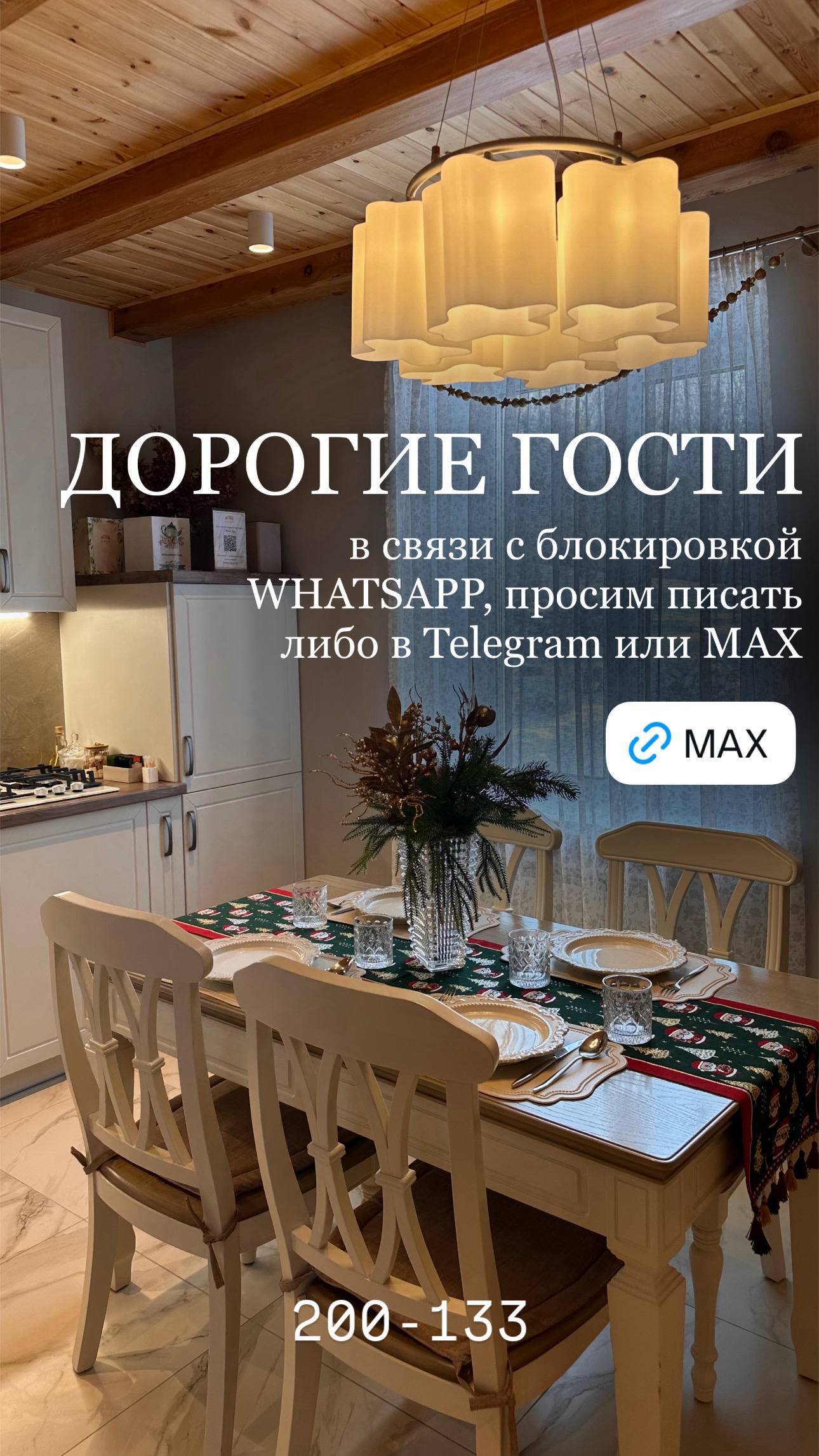Дорогие гости! В связи с блокировкой WhatsApp просим писать либо в Telegram либо в Max